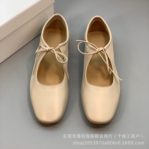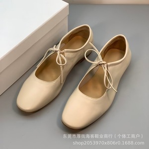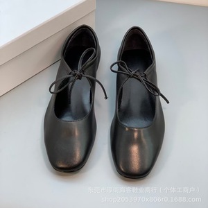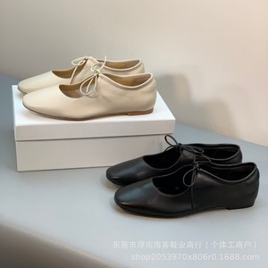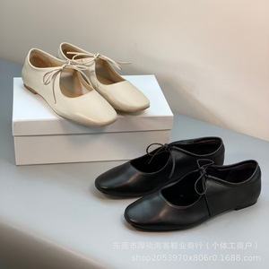 広東省産のトップバージョン!新しいメリージェーンのファッショナブルで多用途な浅い口のラムスキンストラップ付きフラットバレエシューズ
