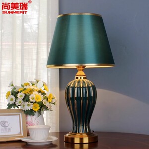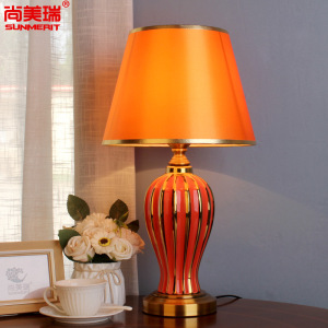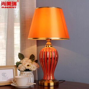 ライト高級テーブルランプセラミック新しいベッドサイドランプ北欧アメリカンインベッドルームモダンシンプル-ナイトスタンドランプオレンジグリーン