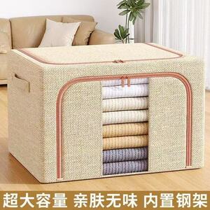 厚みのある綿とリネンの収納ボックス家庭用大型スチールフレーム収納ボックス大容量ワードローブ収納と整理折りたたみ式防塵