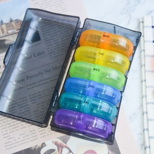 新款厂家直销14格分类药盒一周 彩色塑料保健盒便携随身小药盒