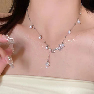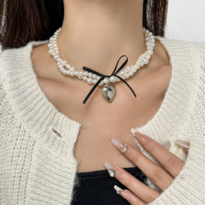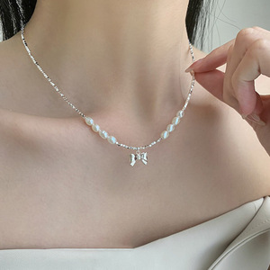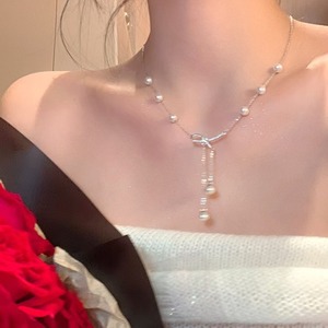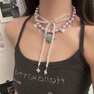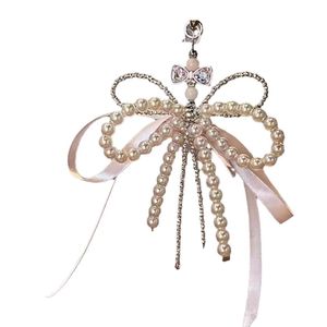 【バレエスタイル】パールシェルビーズリボンボウネックレス携帯電話ビーズペンダントグーベンチェーンガールバッグハンギング