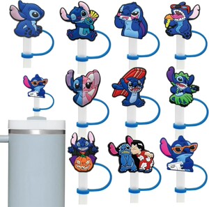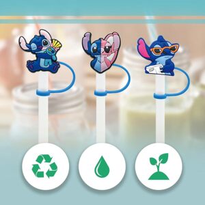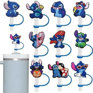 ステッチ漫画キャラクターストローカバーソフトゴムストローキャップシリコーンダストプラグかわいいアニメストローカバー装飾