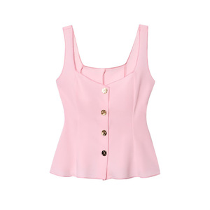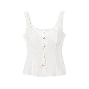 2025 夏の新ヨーロッパとアメリカンスタイルのファッションボタンサスペンダー多用途スクエアカラーベストトップ