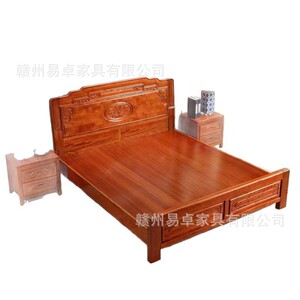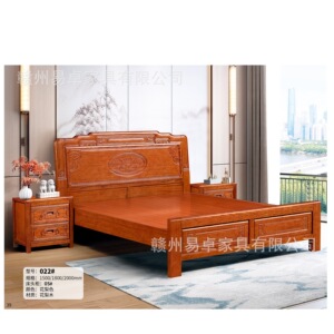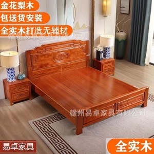 ゴールデンローズウッド無垢材ベッド 1.8m ダブルベッドパイナップルグリッド木製家具マスターベッドルームモダンシンプルマホガニーベッドウェディングベッド