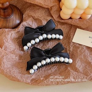 法式小香风黑色蝴蝶结仿珍珠公主头发夹甜美百搭抓夹盘发夹发饰女