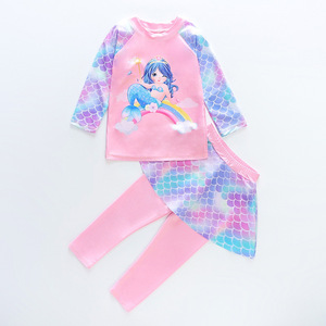 子供水着ガールズファッション新 2024 漫画かわいいスプリット長袖ズボンポリエステルスーツ水着