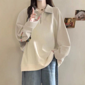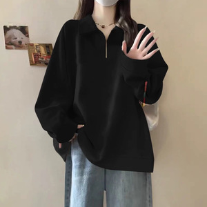 2025秋冬新款外套加绒加厚polo领宽松流行字母印花半拉链卫衣女生