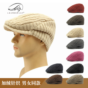 英国スタイルのレトロなウールベレー帽女性の秋と冬のニット帽子プラスベルベット暖かいひさしキャップ男性用カジュアルフォワードハット