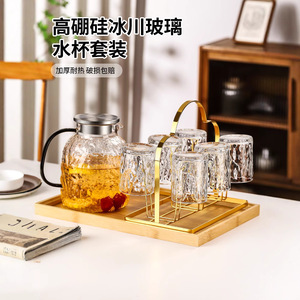 卸売ガラスコールドケトルセット大容量コールドケトル高温耐性沸騰水ガラスシンプルな家庭用ドリンクカップ