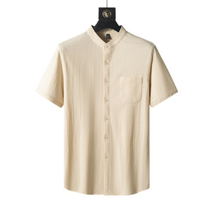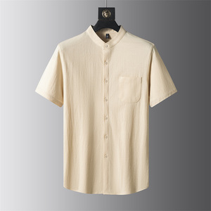 綿とリネンのシャツメンズ半袖ルーズ薄手カジュアルリネントップ中国風の夏のメンズジャケットトップ卸売