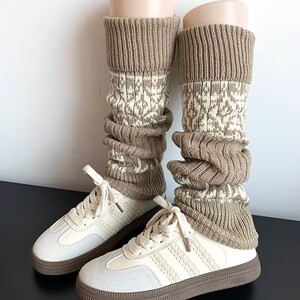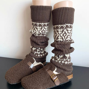 ニットミッドカーフソックス、アメリカンレトロソックス、秋冬メイラードコントラストカラー、パーソナライズされた暖かい靴とブーツ、レッグカバー、パイルソックス