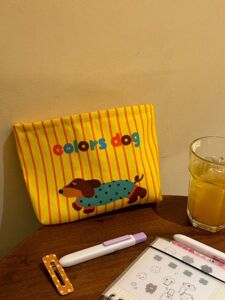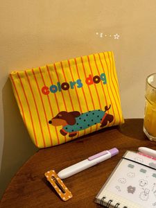 春夏季卡通可爱少女帆布腊肠狗印花化妆包旅行收纳小众精致洗漱包