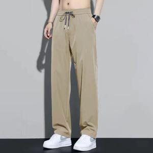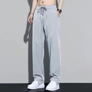 アイスシルクメンズパンツ薄型ストレートルーズパンツ大きいサイズスポーツ速乾性2025新しい夏カジュアル