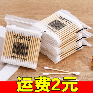 両頭綿棒 100本入、木製スティック、化粧綿棒、耳かき綿球、メイク落とし綿棒、先端丸型