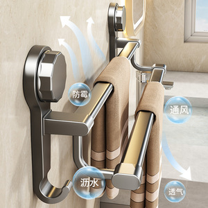 吸盤タオルラック ダブルロッド 浴室 トイレ 浴室 キッチン 穴あけ不要 壁掛け タオルハンガー