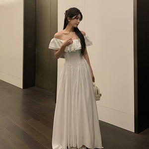 女性用ホワイトワンショルダードレス2025年夏の新しい人気スタイルの見事な海辺の休暇フレンチロングドレス