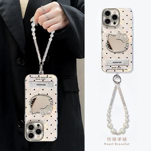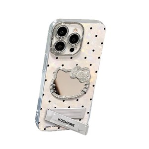 水玉キティ猫ミラー iPhone16pro 携帯電話ケース Apple 15 シェルパターン 14 細穴 13 セット 12
