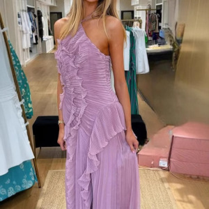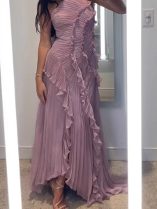 ヨーロッパとアメリカのデザインのフリルホルターネックドレス2025新しいスタイルのセレブスタイルのスリムな女性用スカート