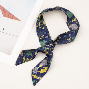 【その他2 植物と動物 ダークブルー】シルクスカーフ1枚