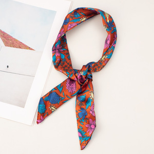【その他1動物と植物の赤】シルクスカーフ1枚