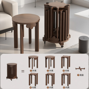 6-in-1 スタッカブルスツール 可動式 [ウォールナット色]