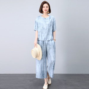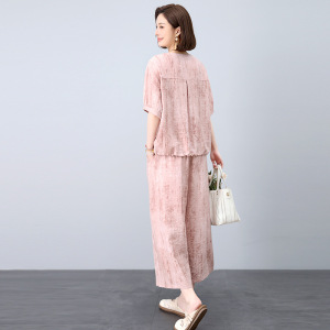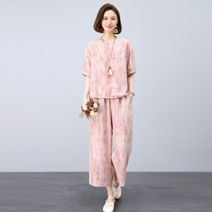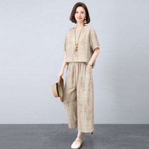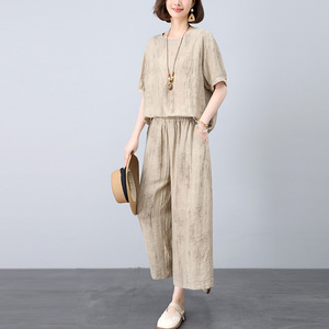 女性のためのファッショナブルなカジュアルスーツ 2025 夏の新しいスタイル中年母親のお腹カバールーズ気質ワイドレッグパンツ 2 点セット