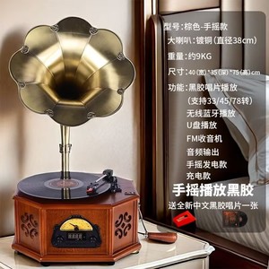 手回し蓄音機 + 充電式モデル + 純正ビニールレコード直径 38cm ラージスピーカー
