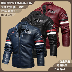 メンズ秋冬ヨーロッパとアメリカのレザージャケットオートバイ刺繍ラベルPUジャケットアウトドアレーシング服トレンディな人気ジャケット