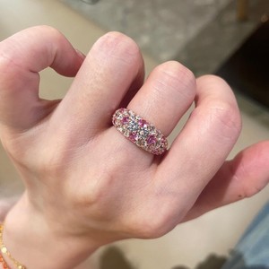 老钱风S925纯银帕拉伊巴戒指彩宝满镶间钻红刚玉指环女士轻奢时尚