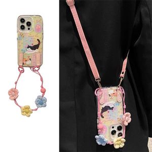 かわいいチェック柄の花柄の子猫 Apple 16promax 携帯電話ケース iPhone15 新しい 13/14/12/x に適しています