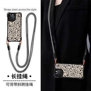 パーソナライズされた落書きの葉新しい Apple 16promax 携帯電話ケース 14 IP15 に適した四隅開口部ストラップ 11p