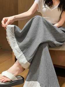 大きいサイズのレースチェック柄ワイドレッグパンツ女性のための 2025 夏の新しいルーズカジュアル多用途ストレートパンツトレンディ