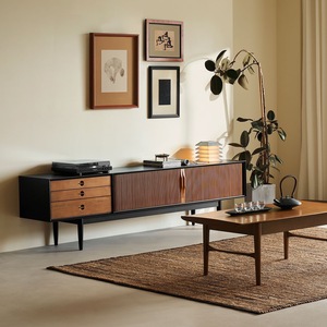 無垢材テレビキャビネット黒レトロスタイル中国風収納キャビネット小さなアパート北欧シンプルなテレビキャビネット中世スタイル