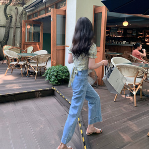 テンセルデニムパンツ レディース ゆったりストレート 夏用 九分丈 薄手 ハイウエスト ワイドレッグ 着痩せ効果 アイスシルクパンツ