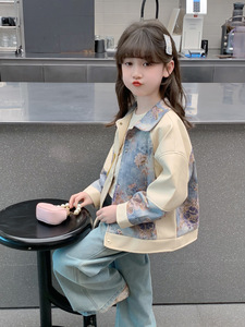 女童外套2025新款春装儿童汉服洋气中式国风皮衣夹克春秋女孩上衣