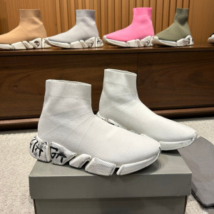 靴下と靴、春夏の新しいハイトップニットソックス、男性と女性用、通気性のある厚底フライウーブン弾性カジュアルカップルトレンディシューズ