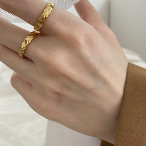 Celine チタン鋼非退色非常に狭いレトロな菱形パターン韓国インリングハイエンド気質中指人差し指リング