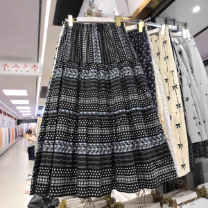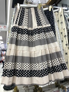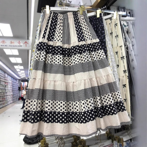 韓国の水玉模様のコントラストのあるコットンスプライシングスカート、女性用、ニッチなデザイン、スリムで大きな裾のAラインスカート、ロングスカート