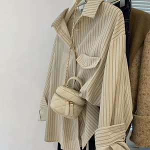新款条纹衬衫外套女春秋春装设计感小众法式别致衬衣晒上衣女