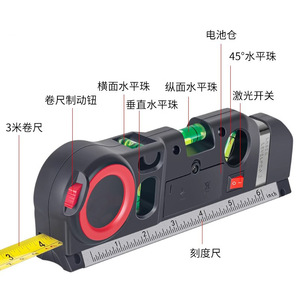 ポータブルレーザーレベル、木工レベル、ビーズ巻尺、多機能クロスライン投影計