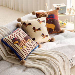 レトロ漫画ホーム枕インターネット有名人ダックスフントリビングルームソファ枕取り外し可能な枕カバーオフィス枕