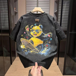 トレンドブランド、ファッショントレンド、シンプルデザイン、アメリカンハイエンド、ゆったりペイント、ハンサムファッション、メンズカジュアル半袖