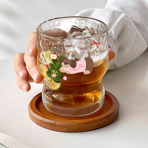 ins玻璃杯高级牛奶杯子小众创意卡通家用水杯女学生冰美式咖啡杯