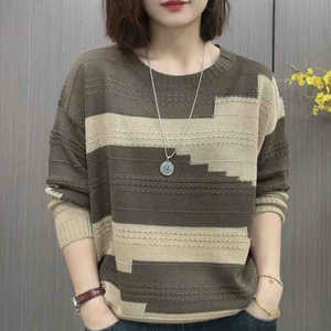 女性のためのラウンドネックカラーブロックセーター 2025 春と秋の新しいスタイル西洋スタイル年齢軽減ニッチ韓国スタイルカジュアル多用途痩身トップ