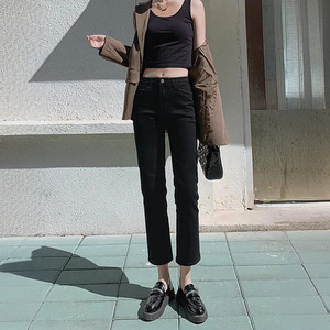 オールドマネースタイル カーキ 9点ストレートジーンズ レディース 春夏 ハイウエスト ストレッチ カジュアル シガレットパンツ 小柄