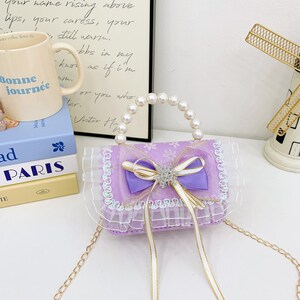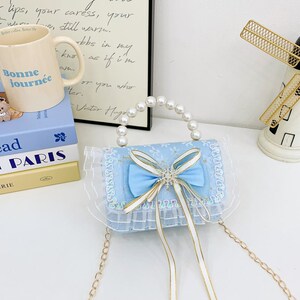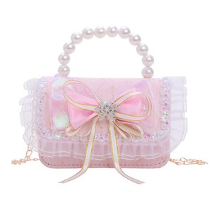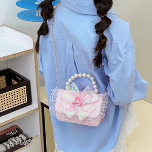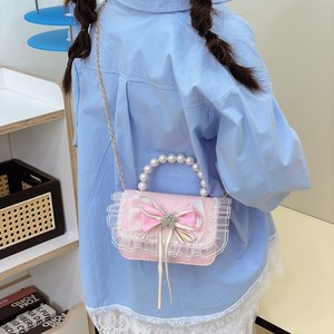 小香风女童蝴蝶结包包洋气公主外出斜挎包女孩珍珠手提包儿童礼物