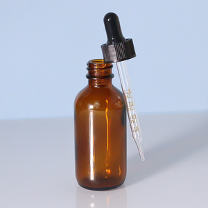 30ml; 茶色のボトル + 間隔の黒いリング + マットブラックのプラスチックヘッド + 尖った茶色の目盛り; ガラス