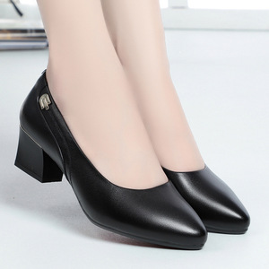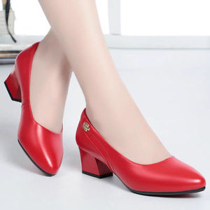 女性用本革作業靴、黒、浅いミッドヒール、ソフトソール、太いヒール、平底、滑り止め、快適なソフトレザー、赤いマザーズシューズ