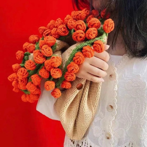 バラの花束ブランケット手織りアクリル素材パッケージウールボールかぎ針編みフラワーブランケットスズランブランケット完成品