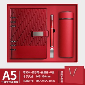A5ルーズリーフ メープルリーフレッド+ペン+Uディスク+魔法瓶カップセット